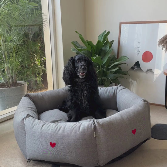 PoochMate Grey Woven Hexagon Bolster Dog is truly luxurious bed made with a 100% thick cotton fabric, with a fully removable and washable cover. Ideal for dogs that like to curl & sleep.11