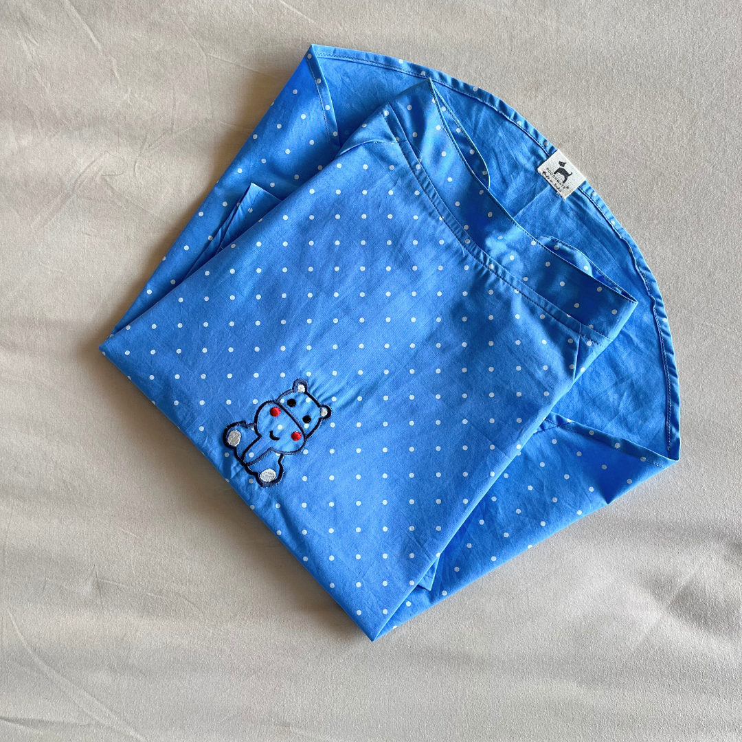 Blue Polka Jungle Adventures Shirt is made with 100% cotton and easy to put on velcro attachments,